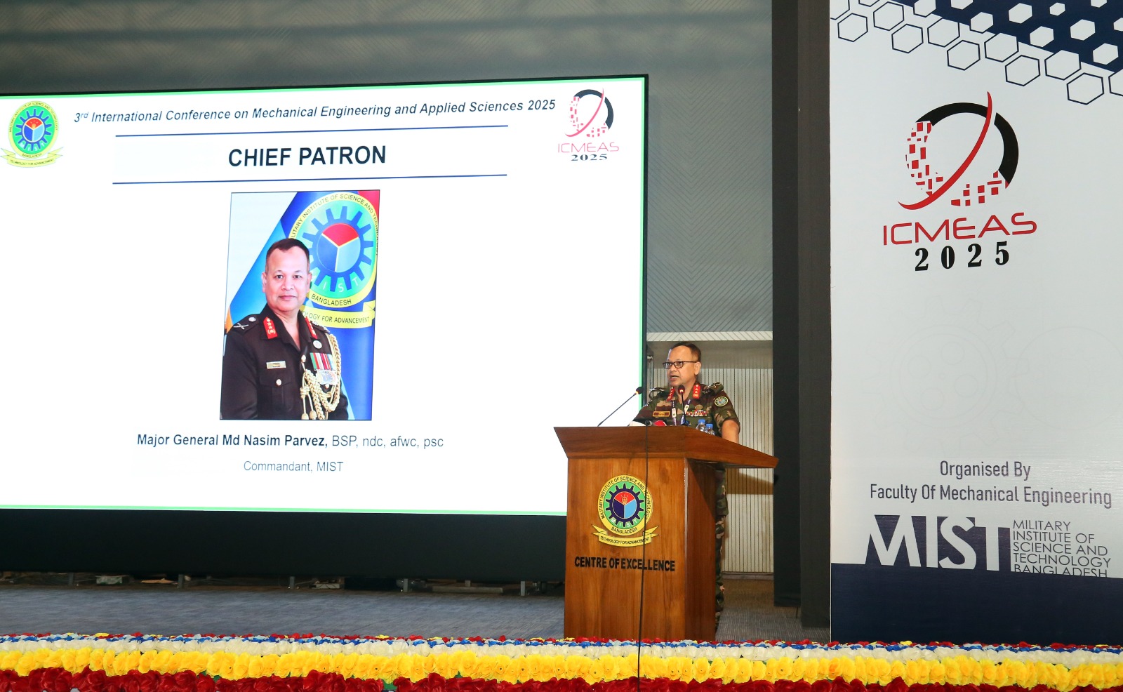 The 3rd International Conference on Mechanical Engineering and Applied Science 2025 (ICMEAS 2025) was held at Military Institute of Science and Technology (MIST) from 17 - 19 July 2025. In this conference researchers and professionals from United States, United Kingdom, Brunei, Egypt, Canada, Ireland, Japan, Kazakhstan, Malaysia, Australia, India, Singapore and China along with Bangladesh had participated.