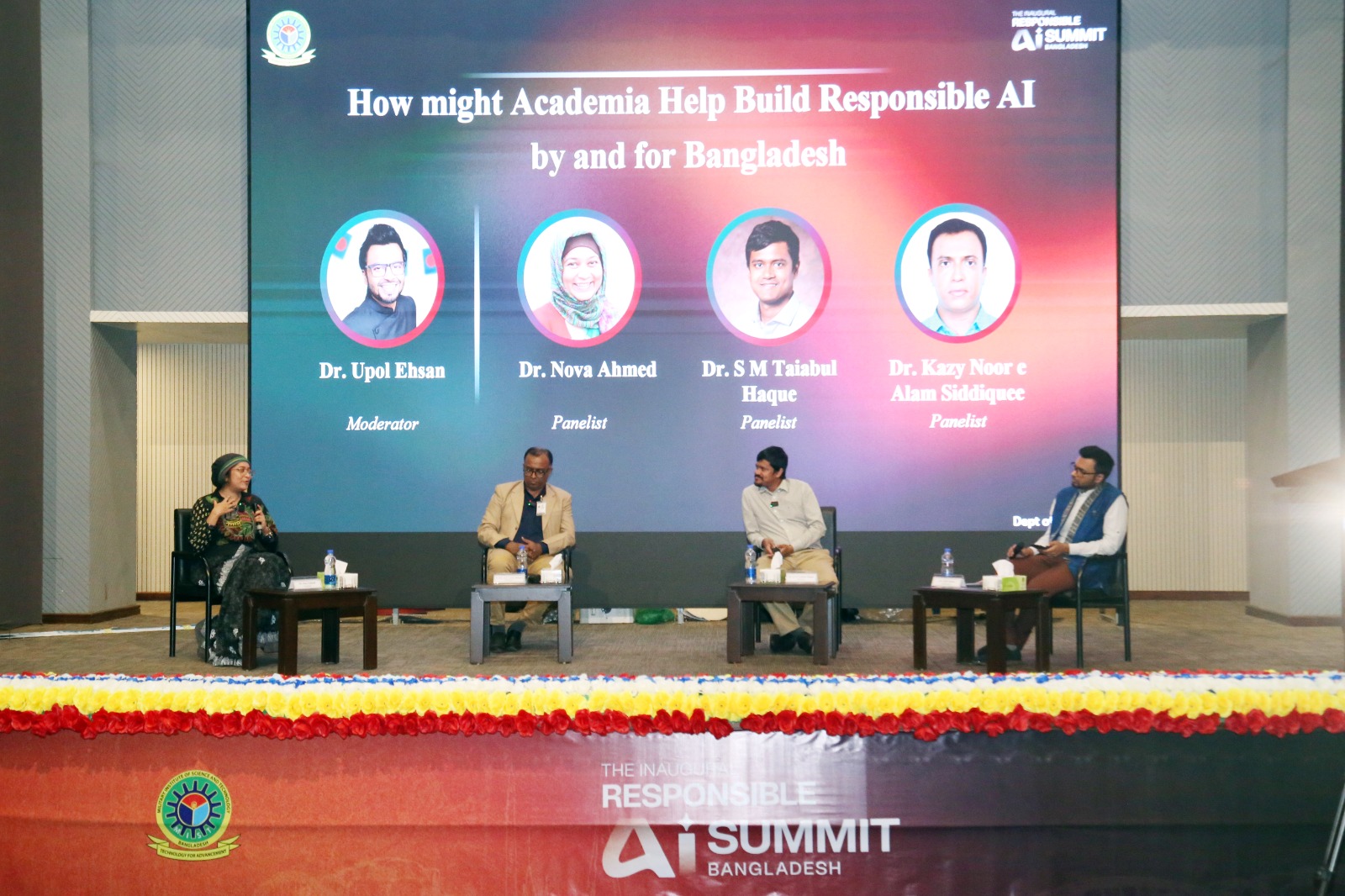 The summit featured two panel discussions. The first panel, “How might academia help build Responsible AI by and for Bangladesh,” focused on the role of academic institutions in promoting ethical AI. The second panel, “Responsible AI focusing on Industry and Policy Formulation,” highlighted the need for effective policies, transparency, accountability, and responsible AI adoption in Bangladesh’s industrial sector.