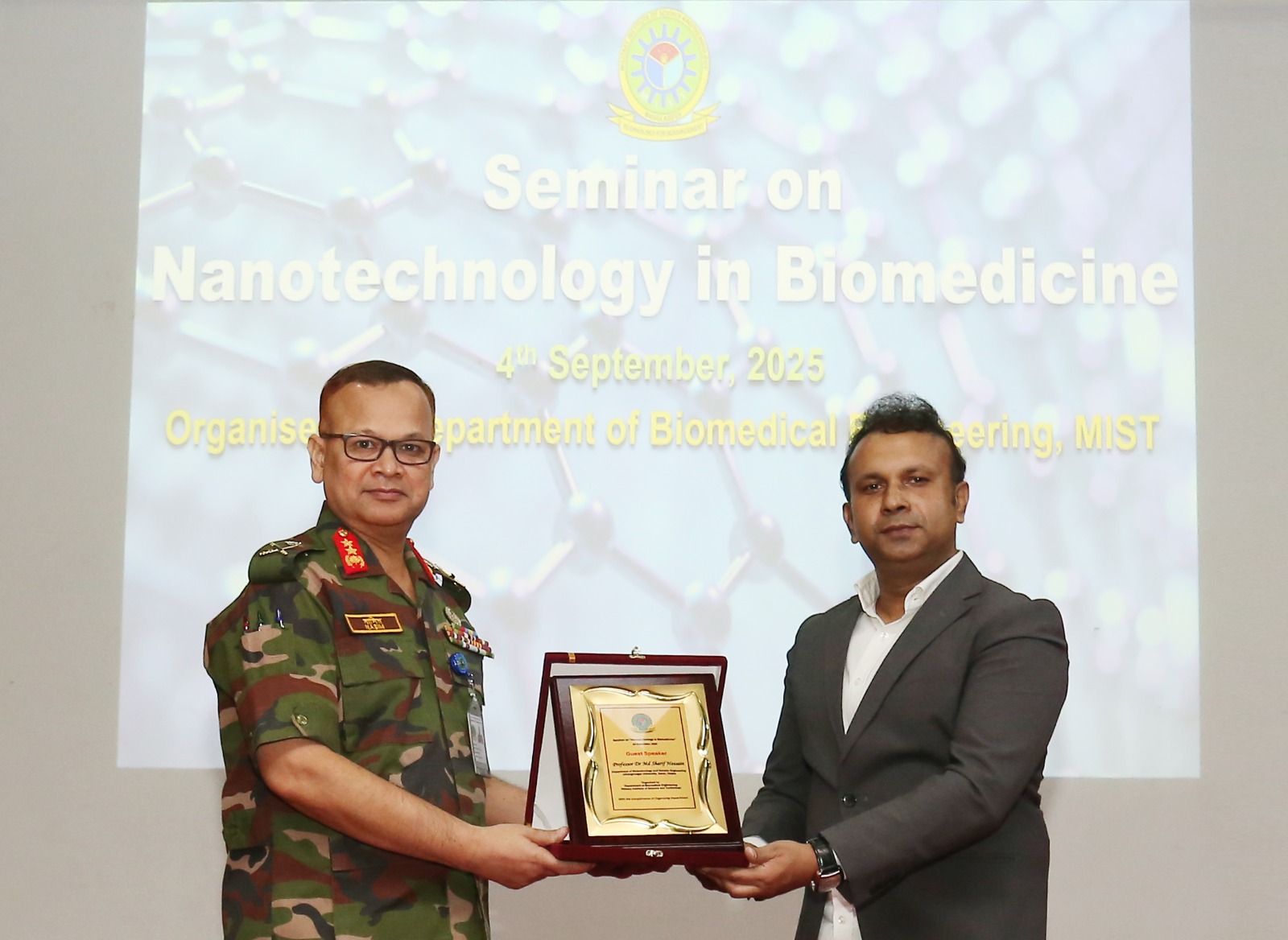 The Department of Biomedical Engineering, MIST, organized a seminar on “Nanotechnology in Biomedicine” on 4 September 2025 at the General Mustafiz Multipurpose Hall (GMMPH), Tower-1, MIST.