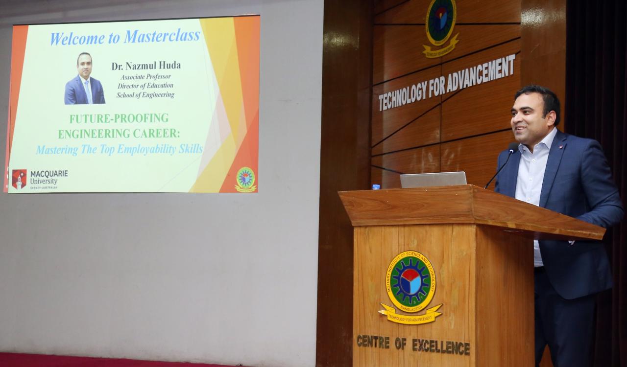 ME Department of MIST organized a seminar titled "Future-Proofing Engineering Careers: Mastering the Top Employability Skills", followed by a collaborative meeting between MIST and Macquarie University, Australia. The seminar featured Associate Professor Dr. Nazmul Huda from Macquarie University as the distinguished guest speaker. Level 4 students from the ME, AE, IPE, and NAME departments actively participated in the seminar and engaged in a lively interactive Q&A session. This event, along with the subsequent meeting, marks a significant step towards strengthening academic ties and fostering potential collaboration between MIST and Macquarie University.
